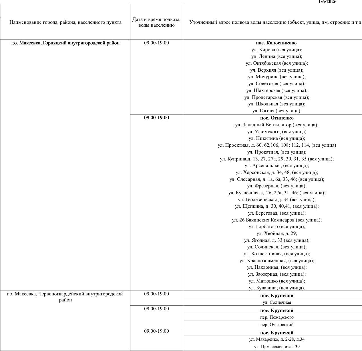 Завтра, 6 января, в Макеевке будет организован подвоз воды для жителей, в дома которых не поступила вода в установленный графиком день.