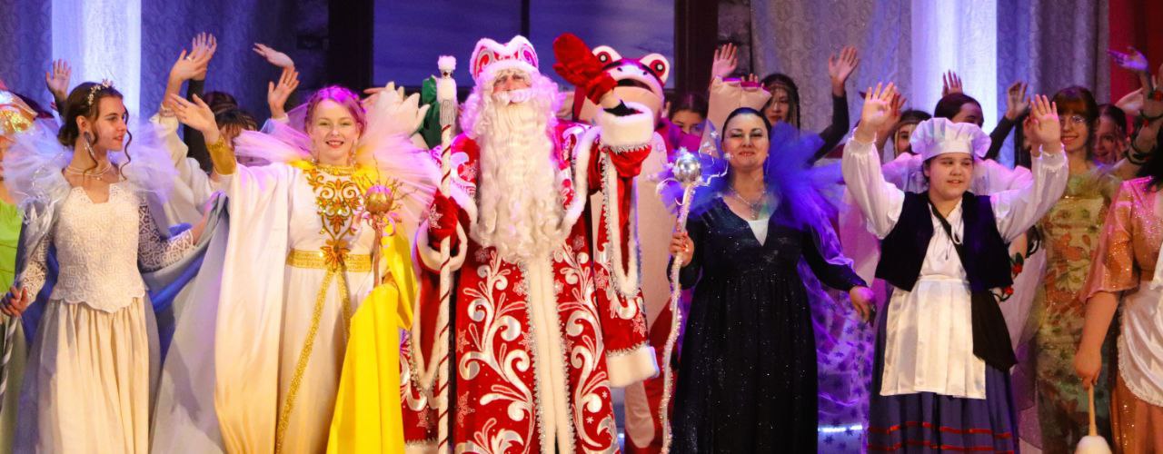 Юным зрителям была подарена волшебная новогодняя сказка «Погодный переполох или кто починил календарь», подготовленная творческим коллективом Культурно-досугового центра. Дети узнали о старинном календаре, познакомились с могучими волшебницами, поиграли с весёлыми жабами и вместе с героями сказки спасли Новый год. В сказке приняли участие юные актеры детской театральной студии «Корпорация», а участники танцевальных коллективов «Смайл», «Индиго» и «Фаиза» украсили спектакль яркими танцевальными номерами.