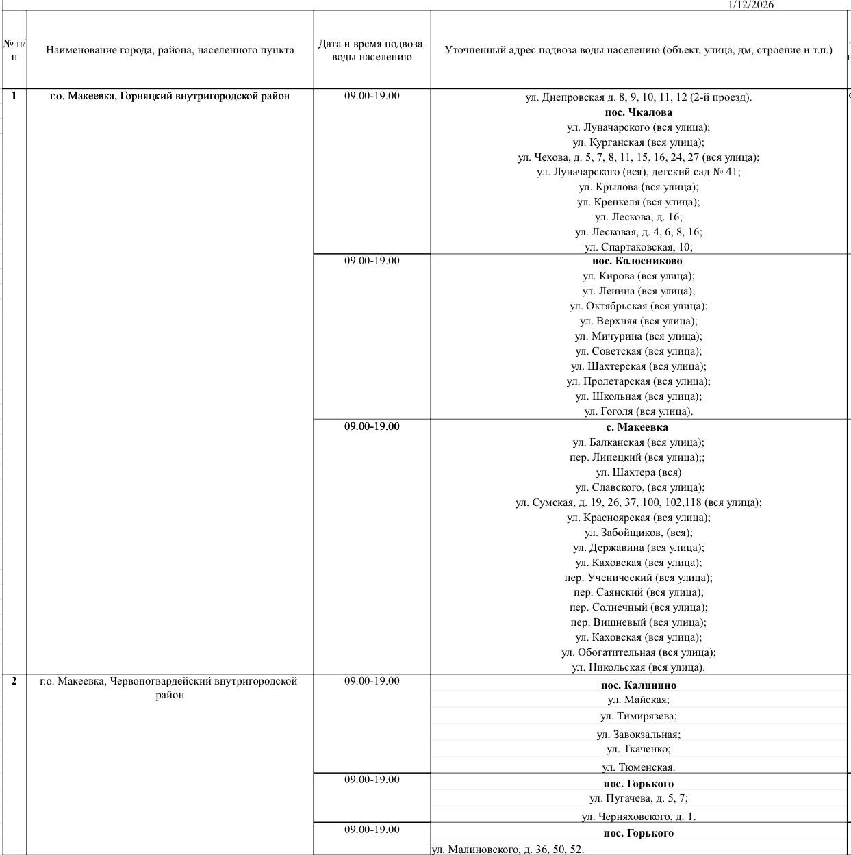 Завтра, 12 января, в Макеевке будет организован подвоз воды для жителей, в дома которых не поступила вода в установленный графиком день.