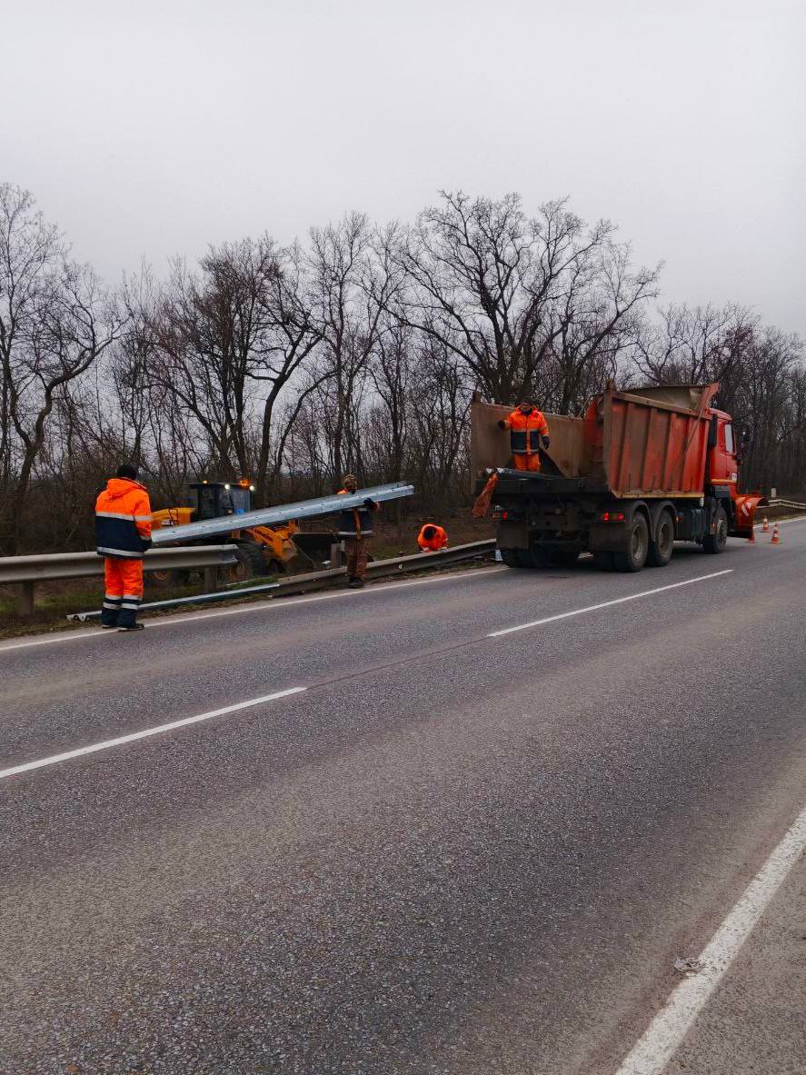 произведеназамена аварийного металлического барьерного ограждения на автомобильной дороге Амвросиевка - Тельманово – Мариуполь