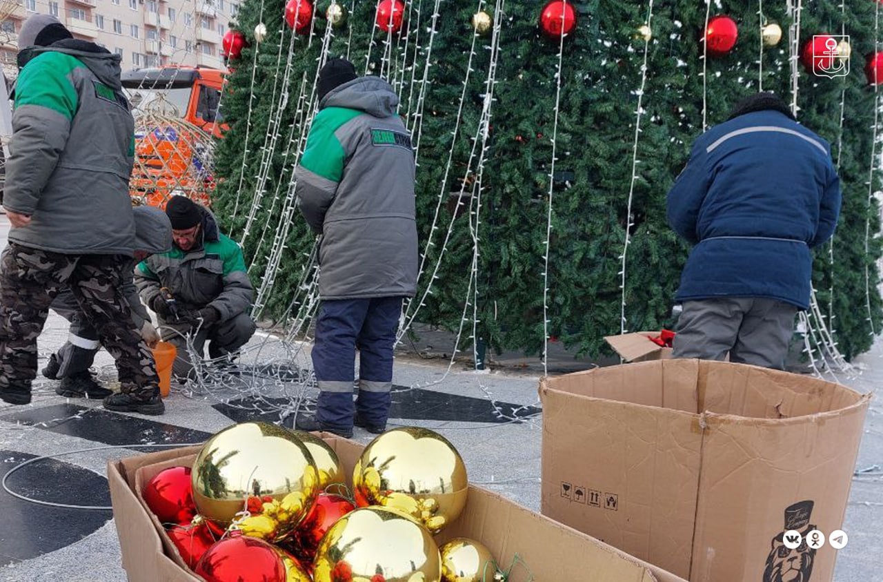 Рабочие зеленого строительства приступили к демонтажу главной елки Мариуполя