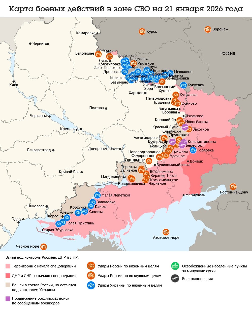 Карта боевых действий в зоне СВО на 21 января 2026 года