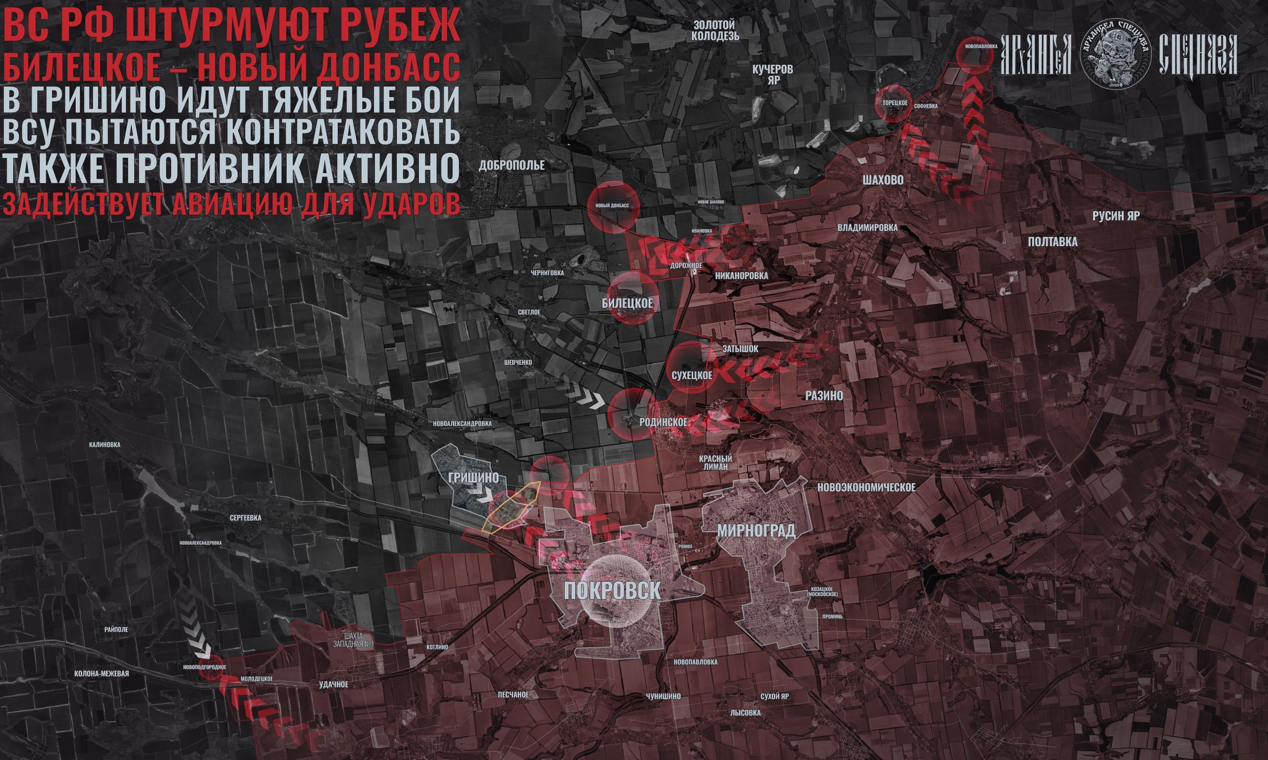 В Гришино наши штурмовые группы уже активно действуют на восточных окраинах. Однако противник дронами наносит постоянные удары, а ДРГ под их прикрытием осуществляет атаки на наши передовые позиции.
