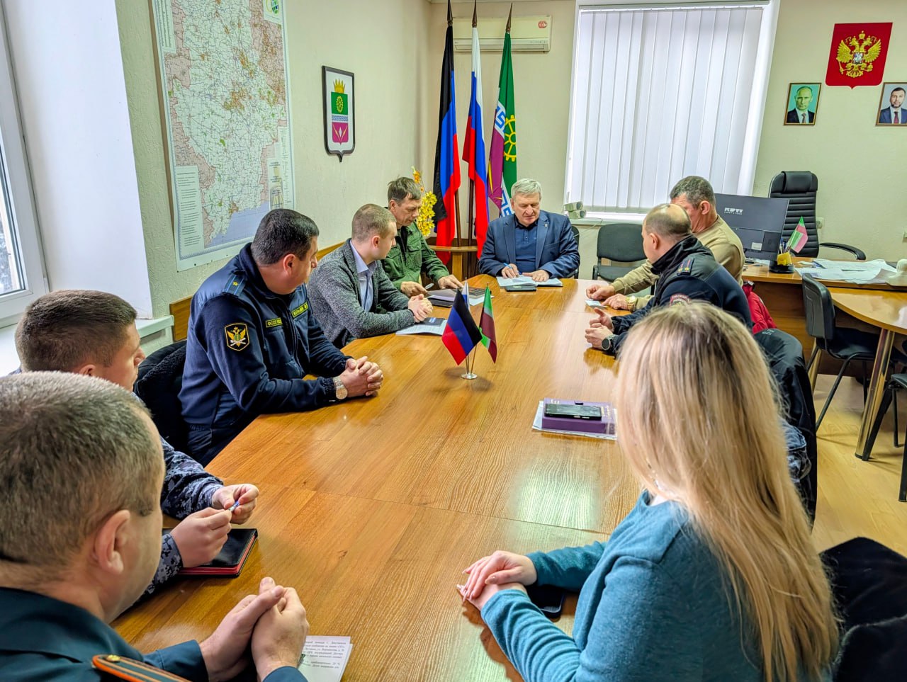 Провел оперативное совещание с руководителями силовых структур округа. Обсудили текущую ситуацию, вопросы административного порядка, пожарной безопасности, соблюдения общественного правопорядка, безопасности движения на дорогах и другие, касающиеся жизнедеятельности округа.