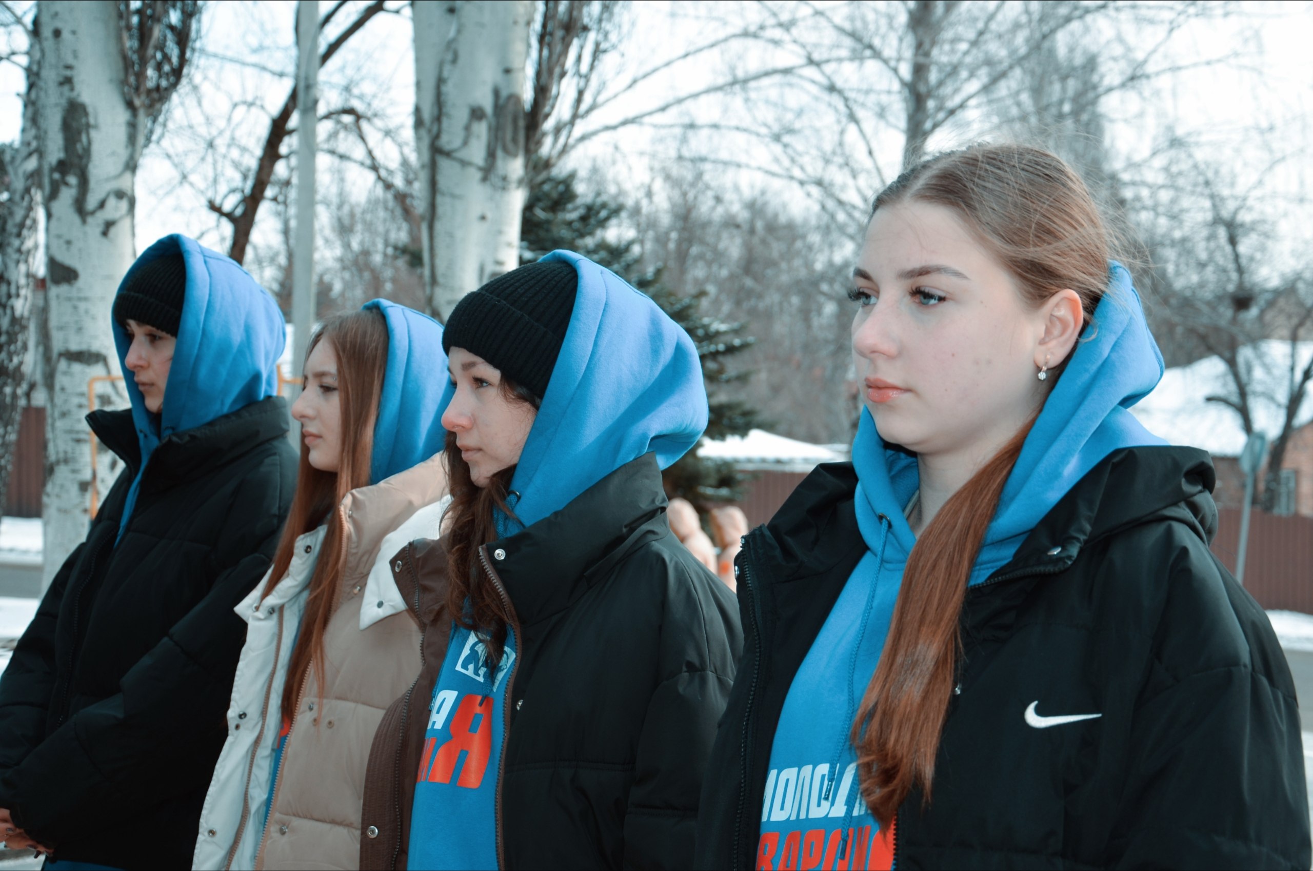 Активисты Торезского штаба МР и МГЕР ДНР приняли участие в памятной акции и в знак скорби по миллионам погибших возложили цветы у мемориала «Вечный огонь».