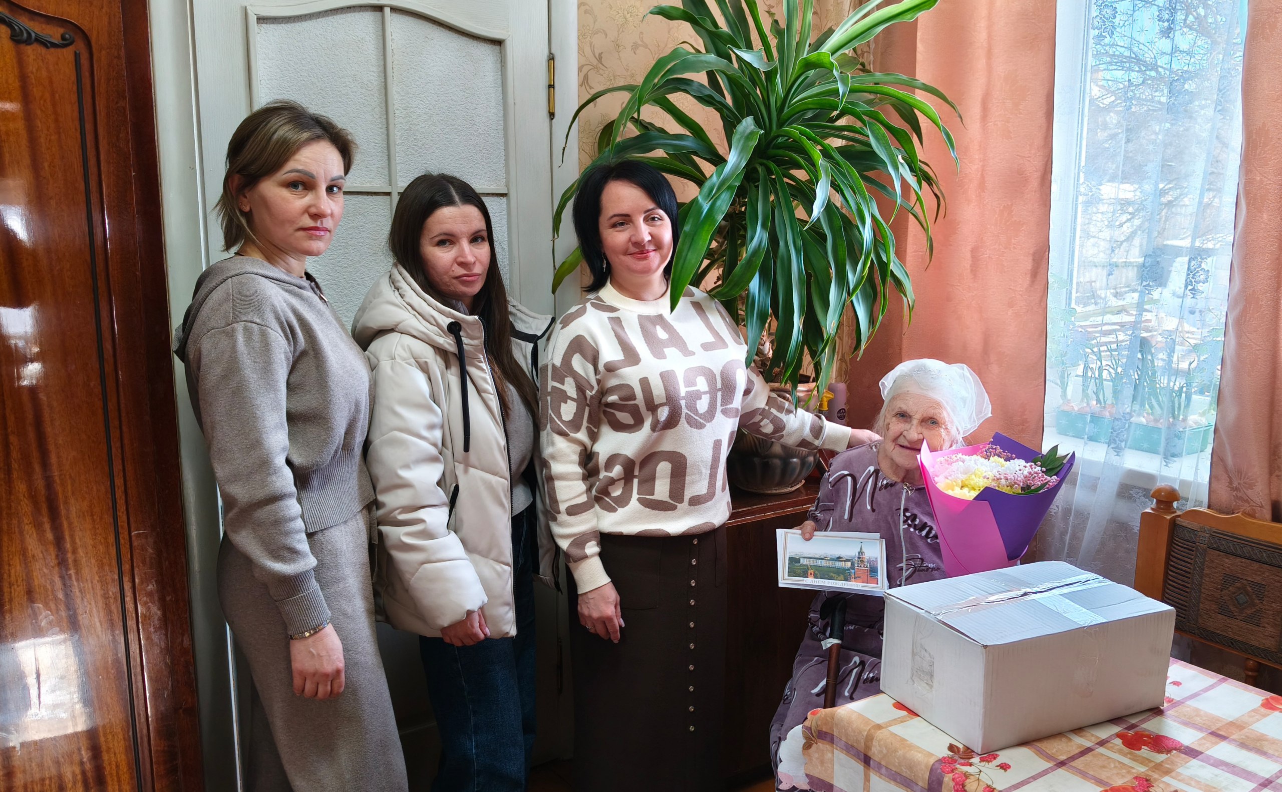 Сегодня же с 98-летием поздравили Прасковью Петровну, передали поздравительный адрес от Президента России Владимира Путина, а также вручили символические подарки – цветы и продуктовый набор.