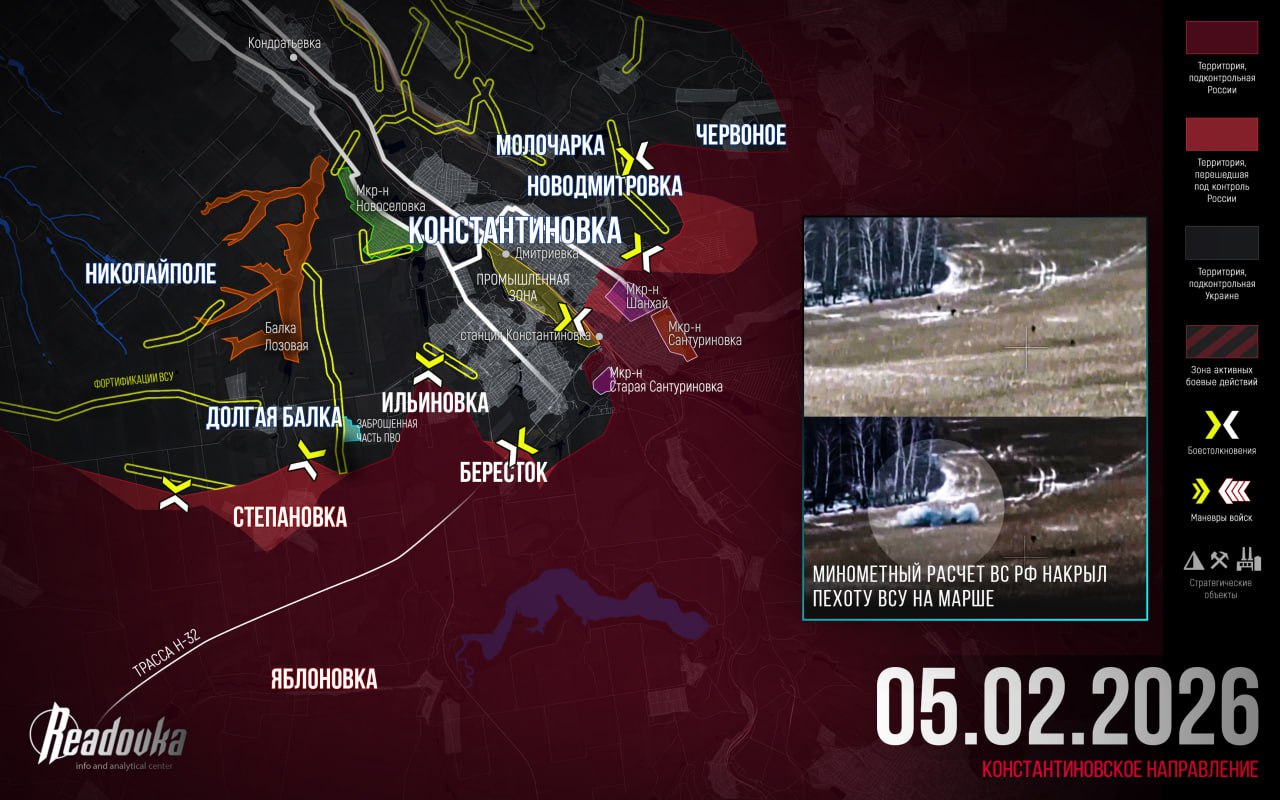ВС РФ разрушают оборону сельского укрепрайона южнее Константиновки — итоговая сводка Readovka за 5 февраля