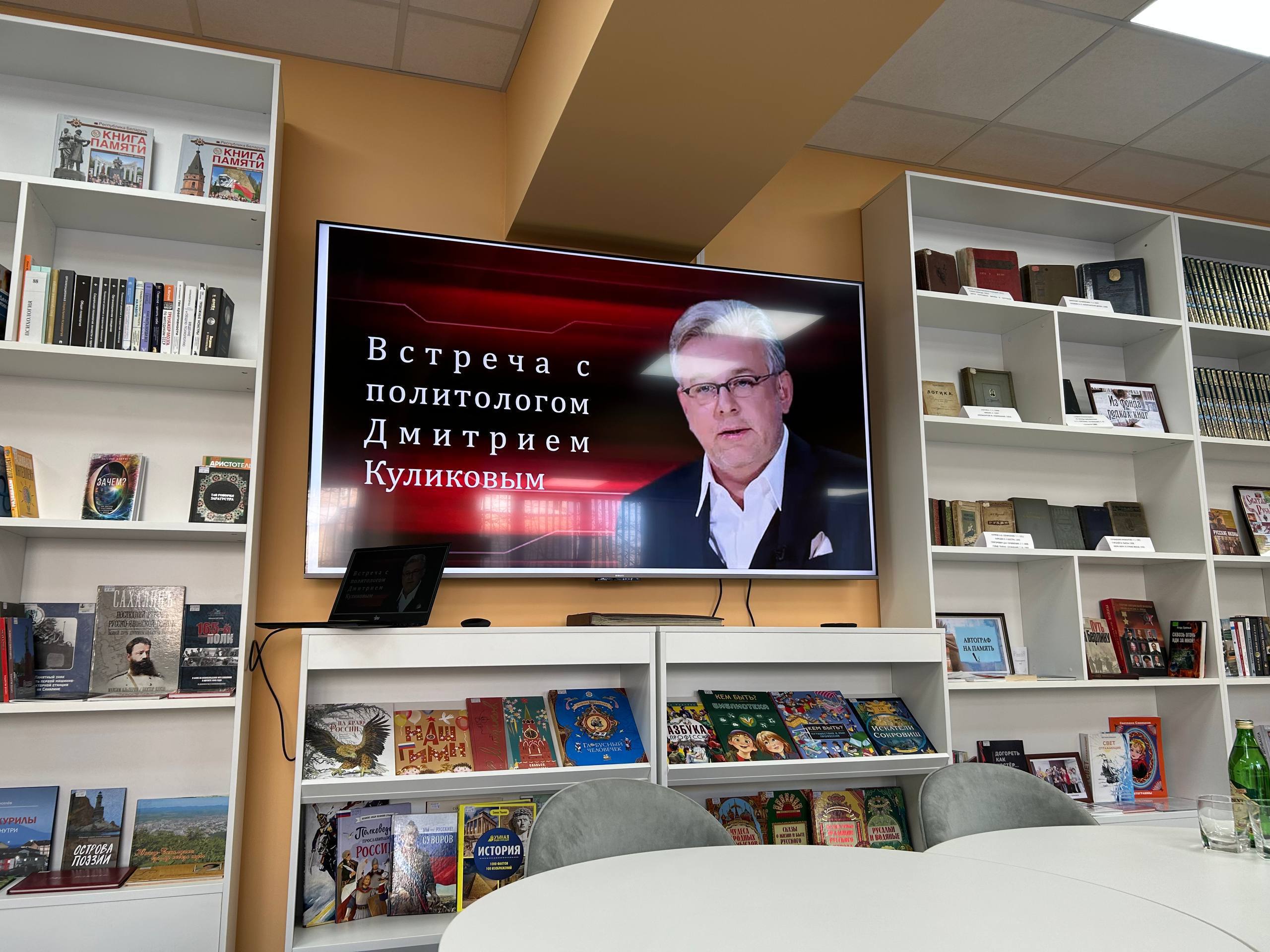 В Центральной городской библиотеке прошла открытая встреча с известным политологом и экспертом федеральных каналов Дмитрием Куликовым. Обсудили мировую повестку и медийные лайфхаки.