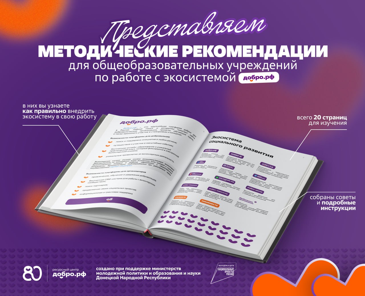 Рекомендации подготовлены Ресурсным центром Добро.рф при поддержке Ассоциации Добро.рф, Министерства образования и науки ДНР и Министерства молодежной политики ДНР в дополнение Национального проекта «Молодёжь и дети».