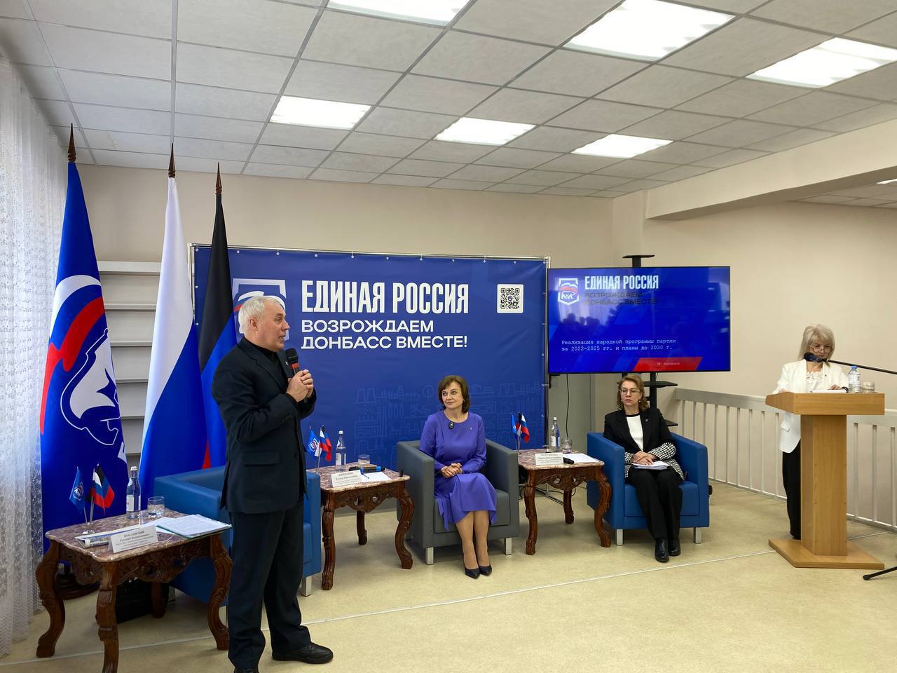 Руководитель регионального партийного проекта «Дети Донбасса» Елена Никитина осветила ход восстановительных процессов в Республике и в Харцызском округе, сделав акцент на создании современной и безопасной среды для детей и организацию их досуга.