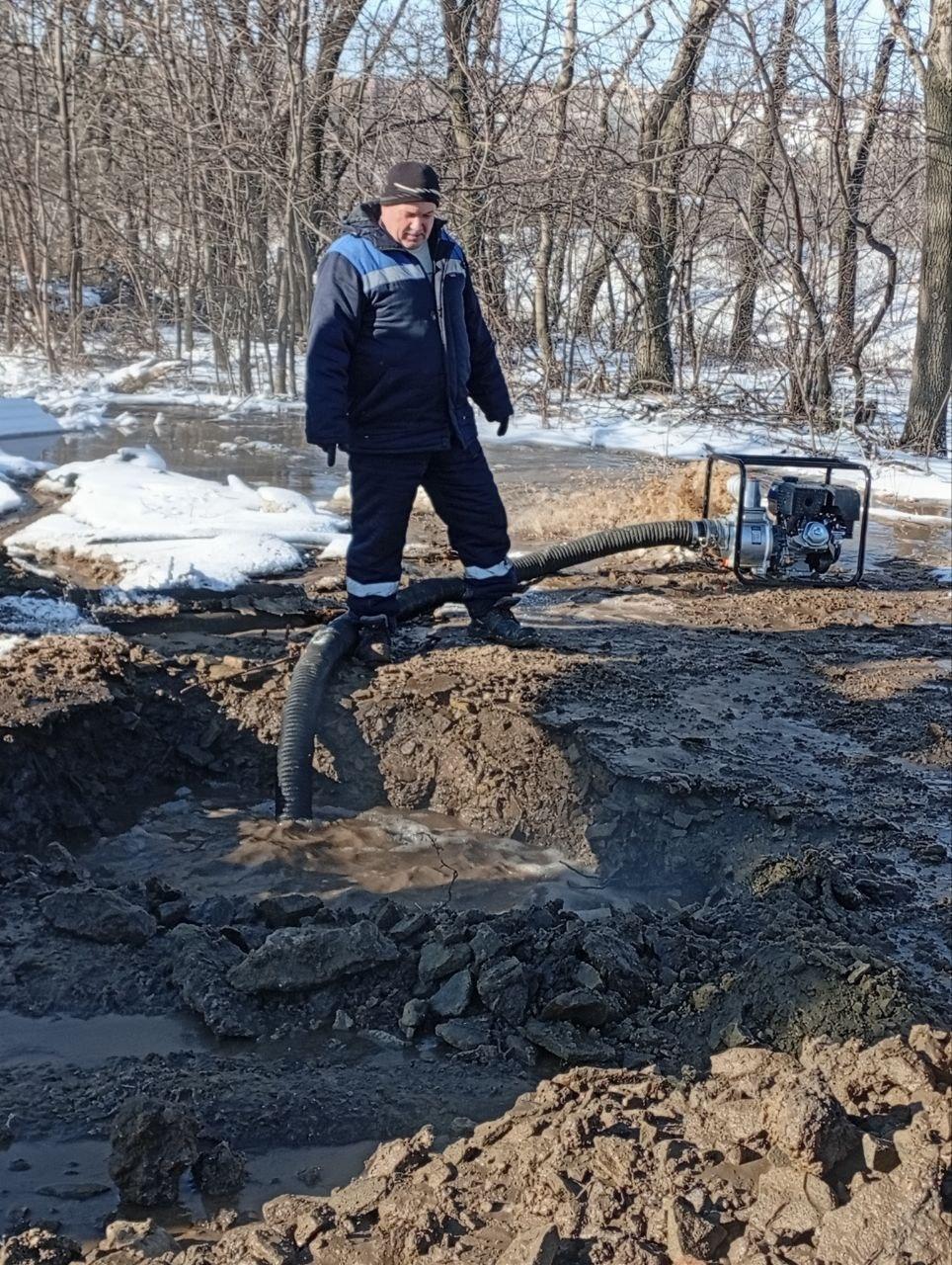 Рабочие провели комплекс мероприятий, направленных на снижение уровня грунтовых вод ниже проектной отметки основания, на пересечении улиц Луганской и Донецкой.