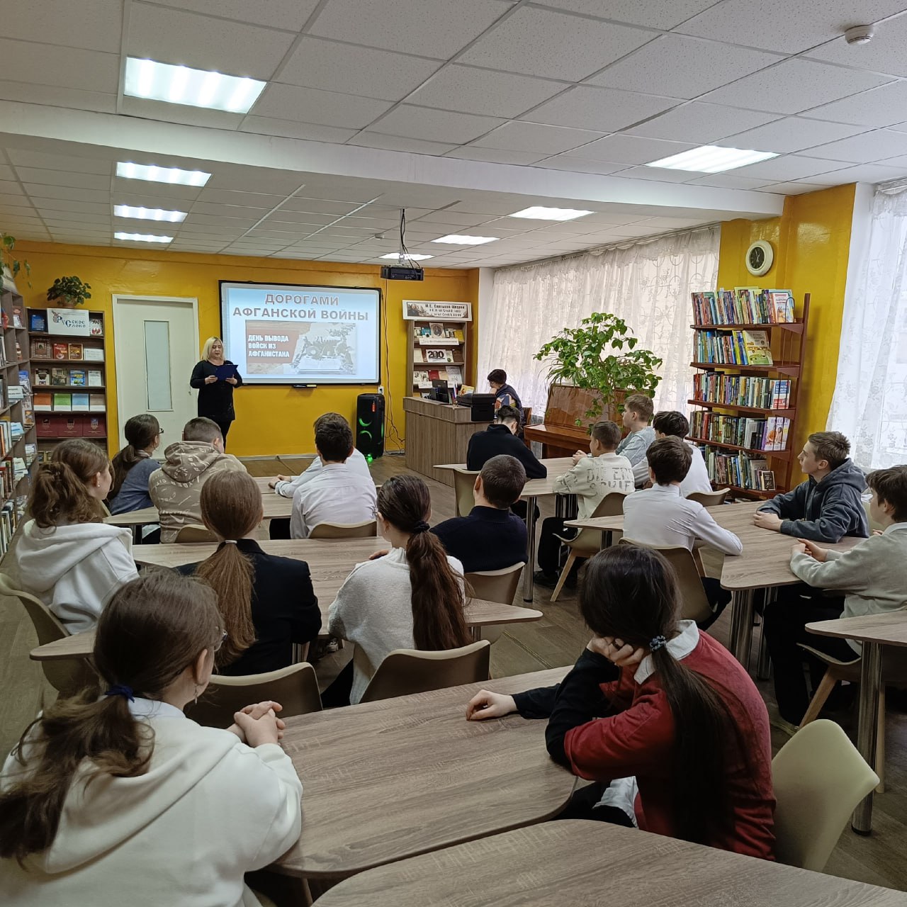 Ведущая-библиотекарь рассказала о воинах-интернационалистах и погрузила учащихся в историю этого конфликта. Особое внимание было уделено местным воинам-афганцам, чьи имена навсегда вписаны в летопись города. Ребята с трепетом рассматривали старинные фотографии, запечатлевшие юных солдат, с честью исполнявших свой интернациональный долг.