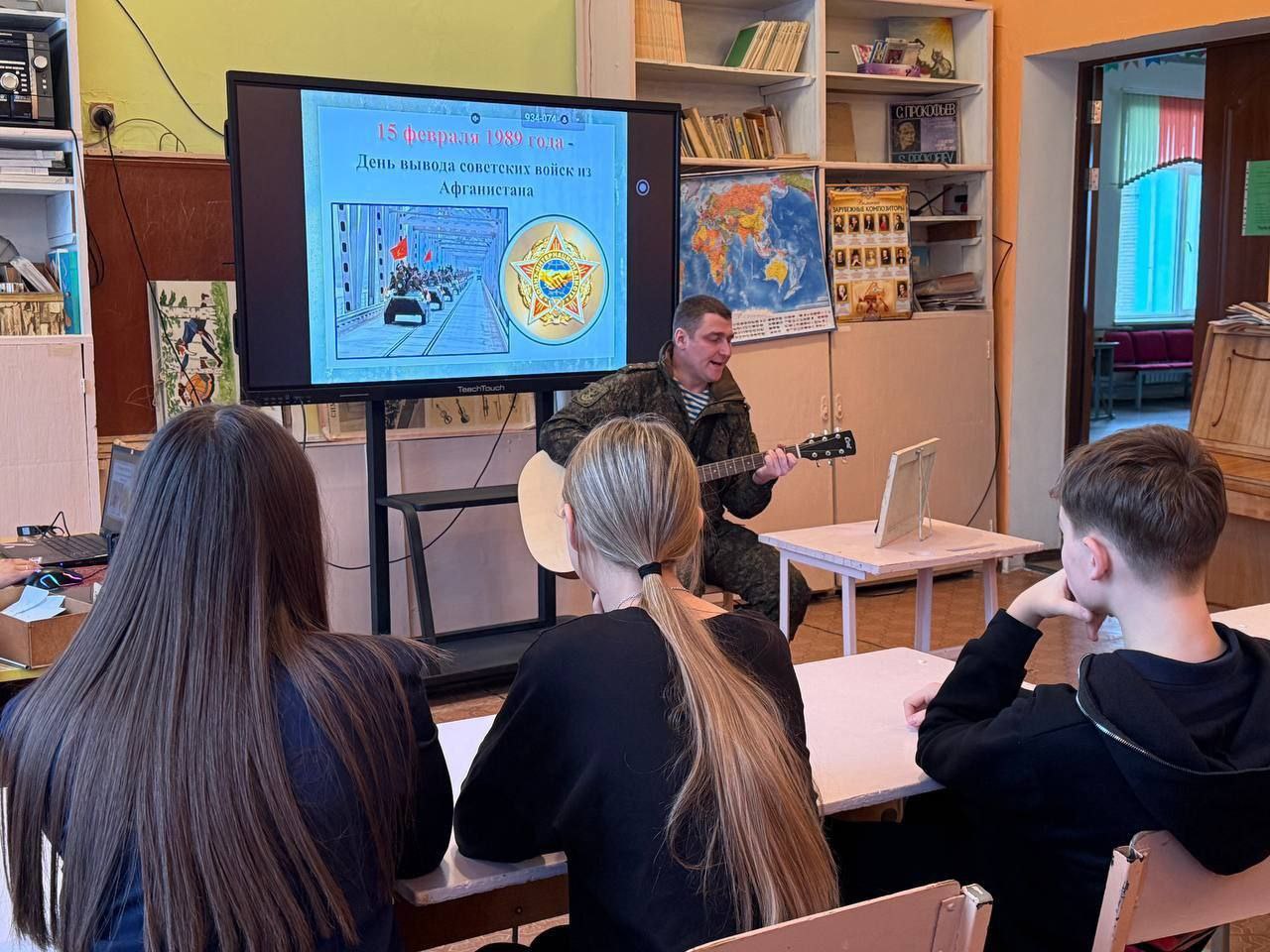 В ГБОУ «Новоамвросиевская школа Амвросиевского м.о.» прошёл урок мужества «Время выбрало их..», посвящённый Дню памяти о россиянах, исполнявших служебный долг за пределами Отечества.