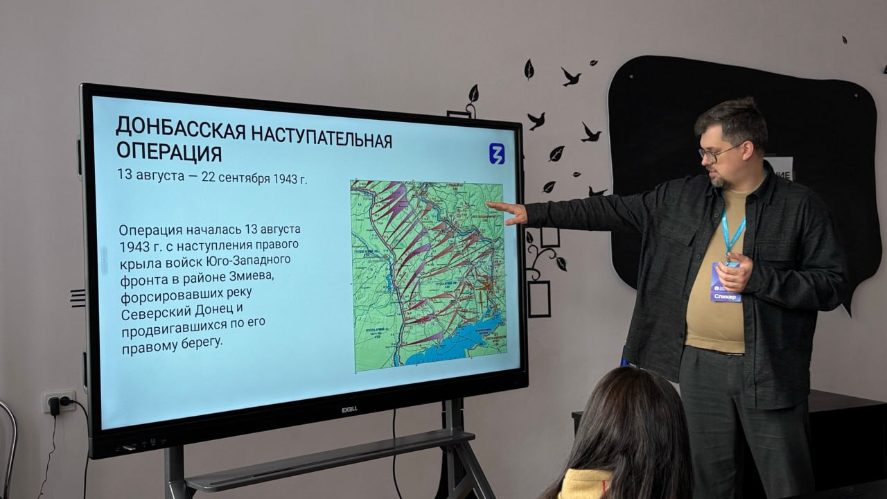 Лектор Российского общества «Знание» Алексей Якель рассказал школьникам об освобождении Донбасса от нацистов в 1943 году и о борьбе с украинским нацизмом в 2014-м. Ребята с интересом слушали о знаковых боевых местах и героических страницах нашей истории.