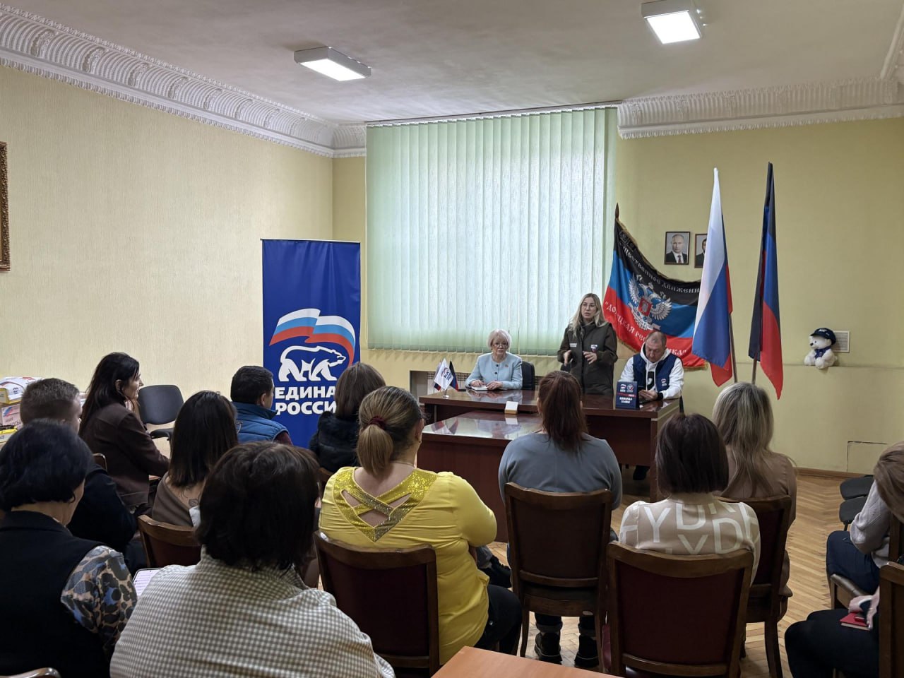 Сахалинцы передали местному отделению флаги, экипировку и канцелярию с символикой «Единой России».