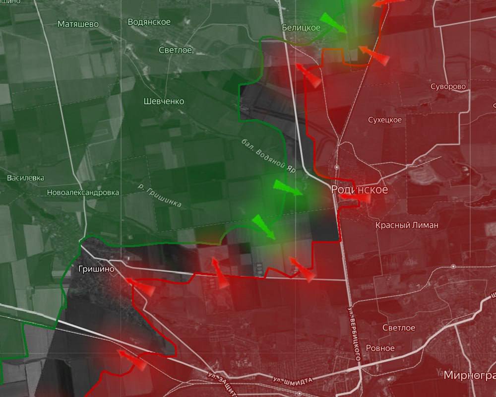 «На Покровском направлении российские войска продвигаются в окрестностях Гришино. За сам населенный пункт продолжаются тяжелые бои.
