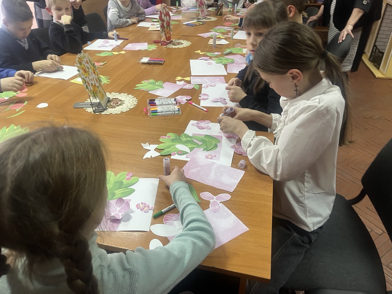 В преддверии Международного женского дняв библиотеке-филиале №10 города Углегорска была организована творческая мастерская по созданию праздничной открытки «Весенний букет».