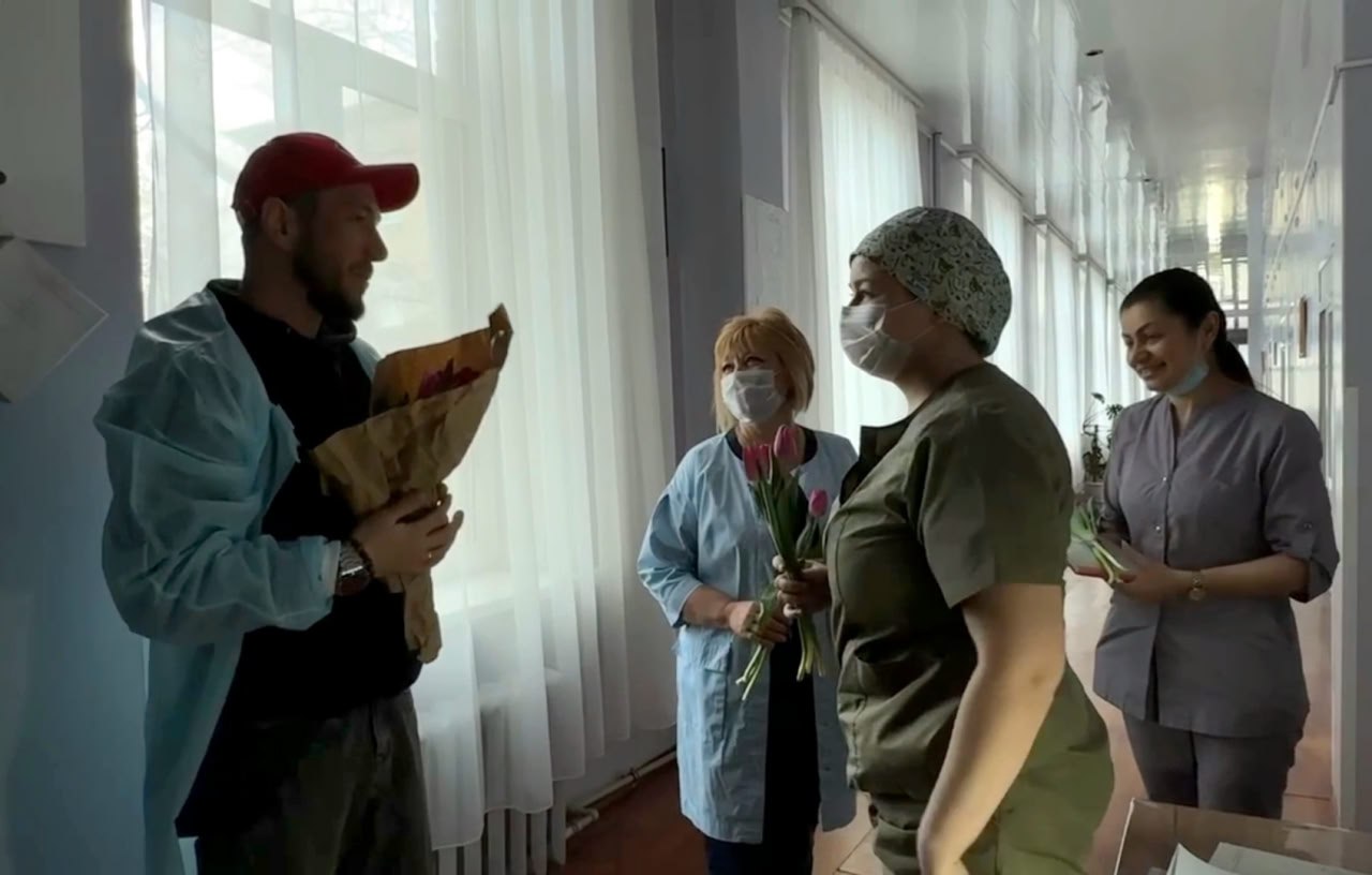 Активисты поздравили дежурный персонал отделений больницы с Международным женским днём.
