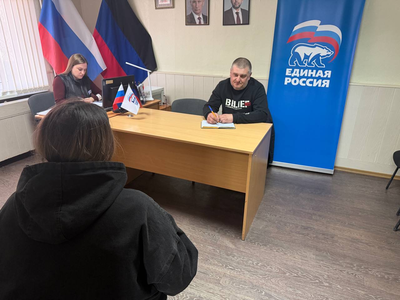 Сегодня, 12 марта, в общественной приёмной партии "Единая Россия" в городе Снежное прошёл приём граждан депутатом фракции партии "Единая Россия" Снежнянского городского совета Пащенко Александром.