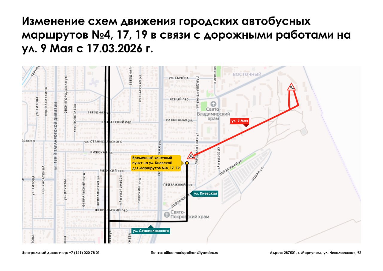 В связи с дорожными работами на ул. 9 Мая, следующие городские автобусные маршруты с 17.03.2026 г. изменяют схемы движения в обоих направлениях: