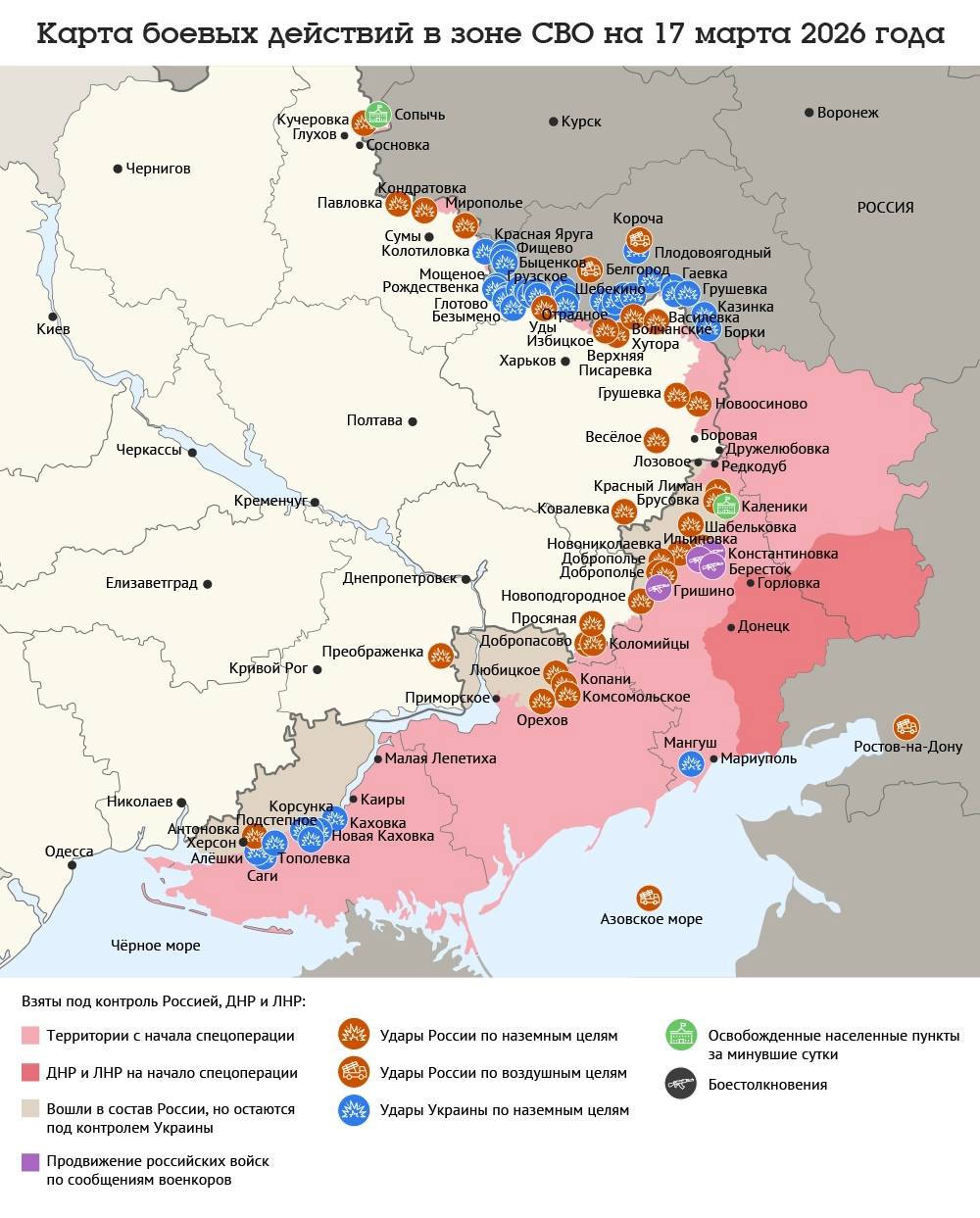 Карта боевых действий в зоне СВО на 17 марта 2026 года
