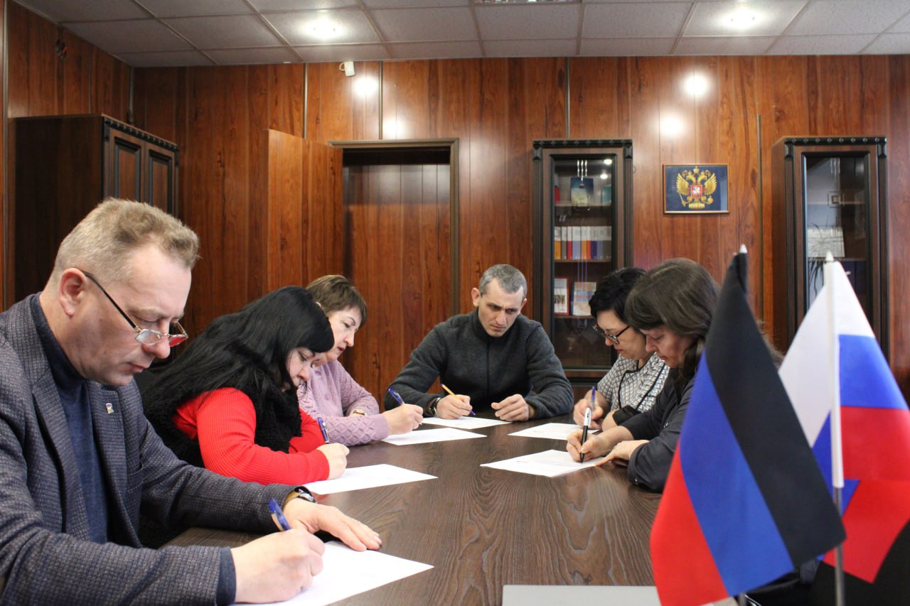 Акция проходила в формате очного диктанта. Сотрудники администрации округа и муниципального совета на специальных бланках написали под диктовку текст на русском языке.
