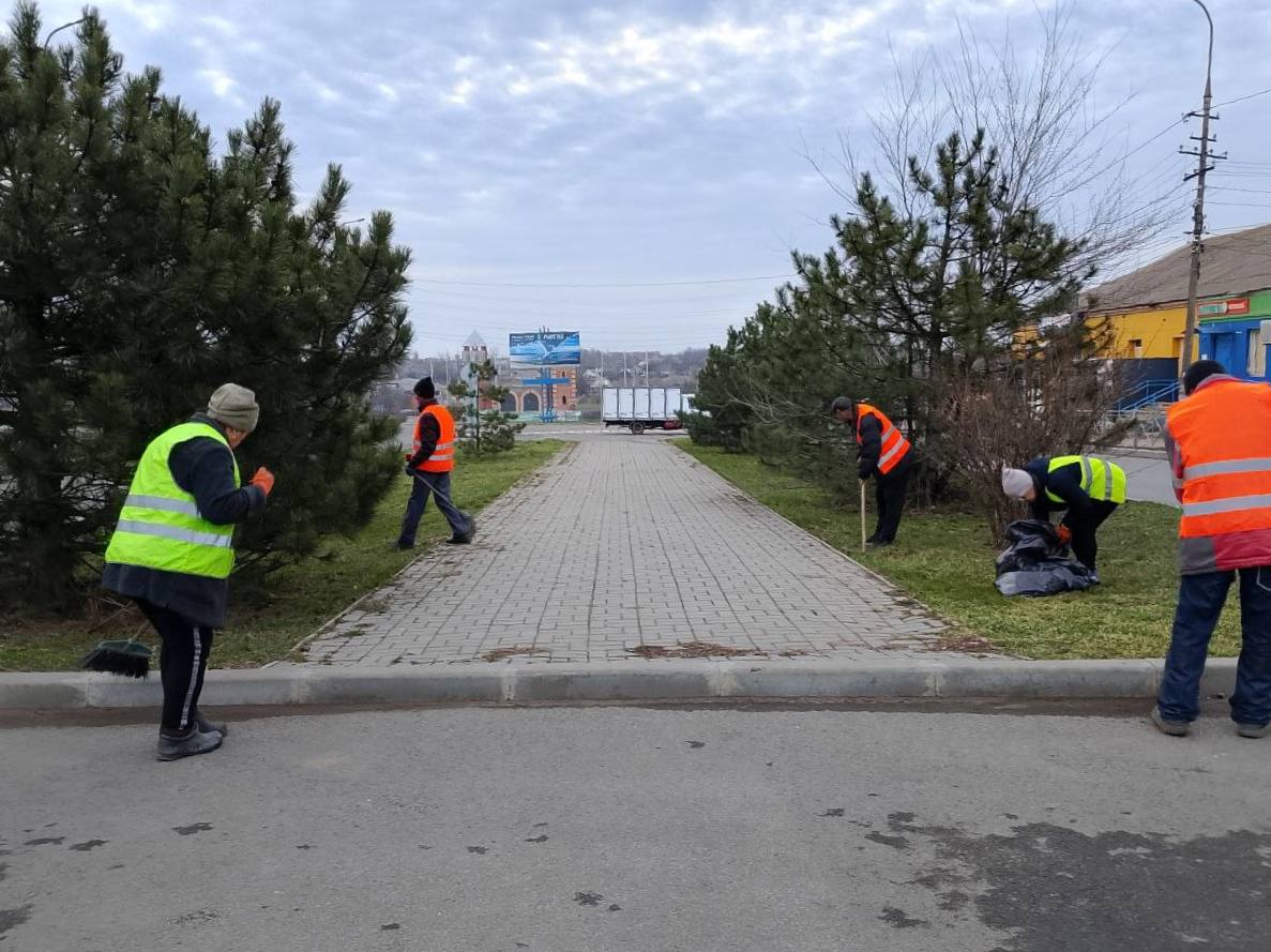 · Центральная аллея, дорога на Мариуполь, площадки для стоянки машин — произведён сбор мусора;