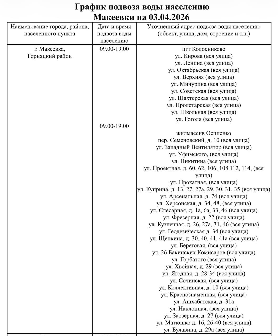 Сегодня, 3 апреля, в Макеевке будет организован подвоз воды для жителей, в дома которых не поступила вода в установленный графиком день.