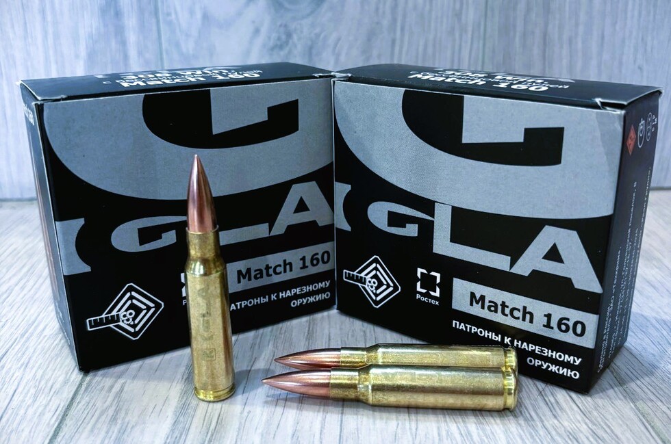 Все компоненты патрона Match 160 — пуля, гильза, капсюль и порох — произведены в России из отечественного сырья. Изделие также может использоваться для спортивной стрельбы.