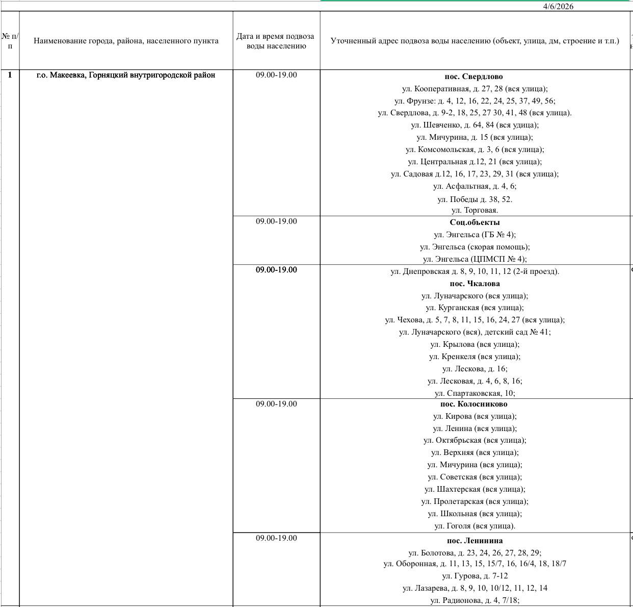 Завтра, 6 апреля, в Макеевке будет организован подвоз воды для жителей, в дома которых не поступила вода в установленный графиком день.