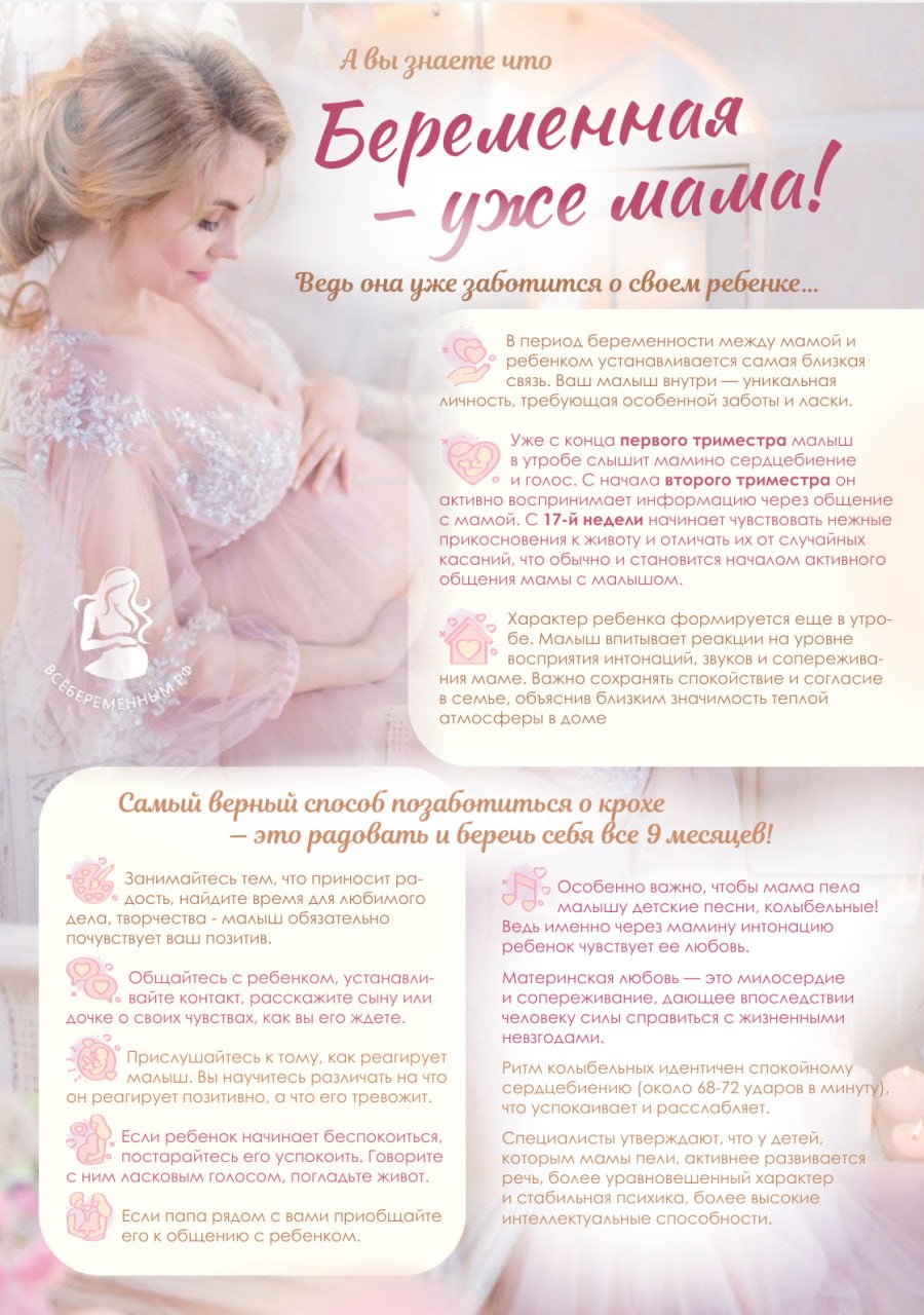 В этот нежный период важно чувствовать поддержку. Именно в целях повышения качества оказания помощи беременным женщинам и поддержки института материнства существует Всероссийский общественный проект «Всё беременным.рф».