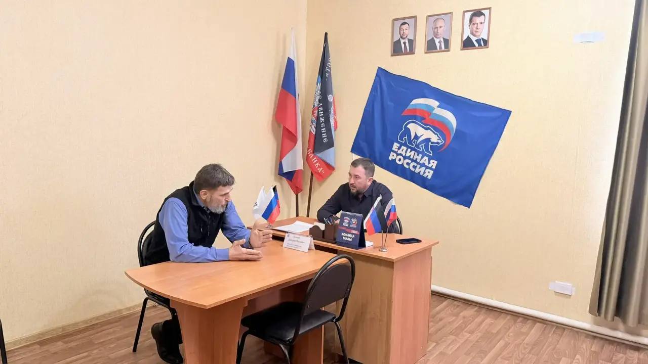 Сегодня состоялся личный приём граждан в общественной приёмной Партии «ЕДИНАЯ РОССИЯ» Старобешевского местного отделения председателем Старобешевского муниципального совета Донецкой Народной Республики первого созыва Дмитрием Блиновым.