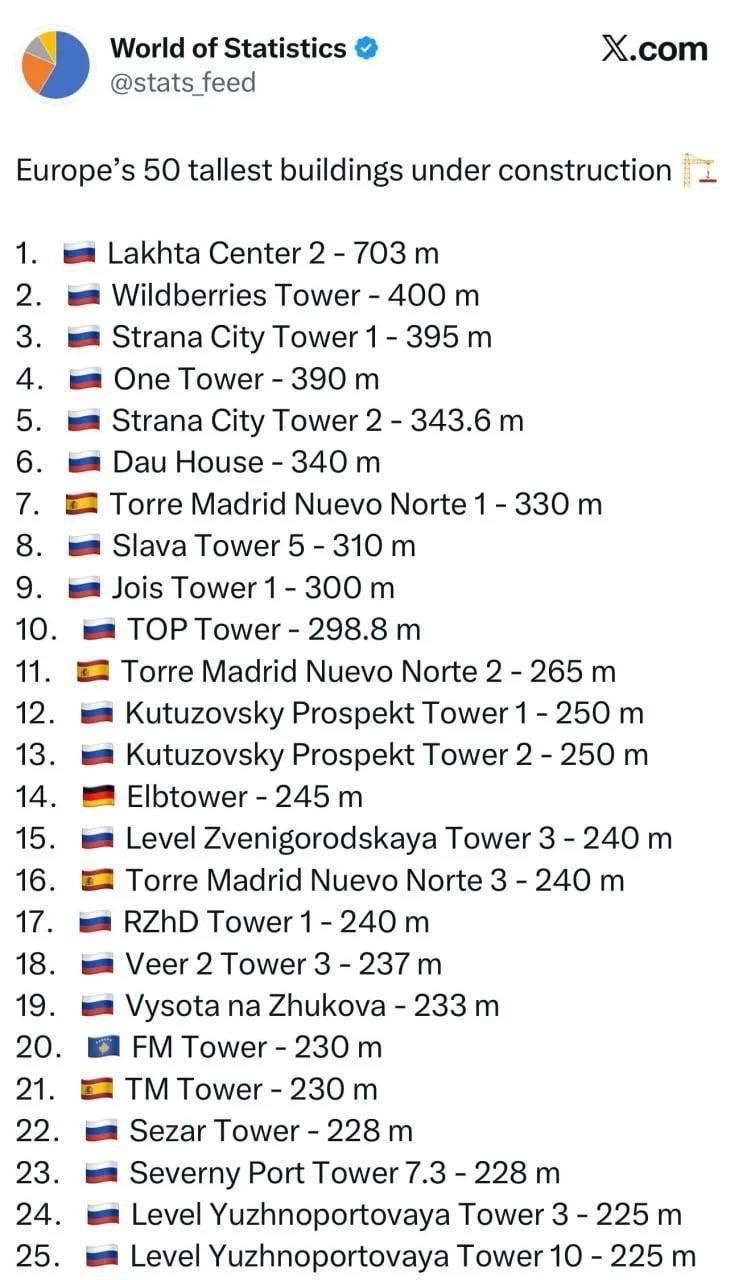 Почти все небоскрёбы в списке — НАХОДЯТСЯ В РОССИЙСКОЙ ФЕДЕРАЦИИ!!!