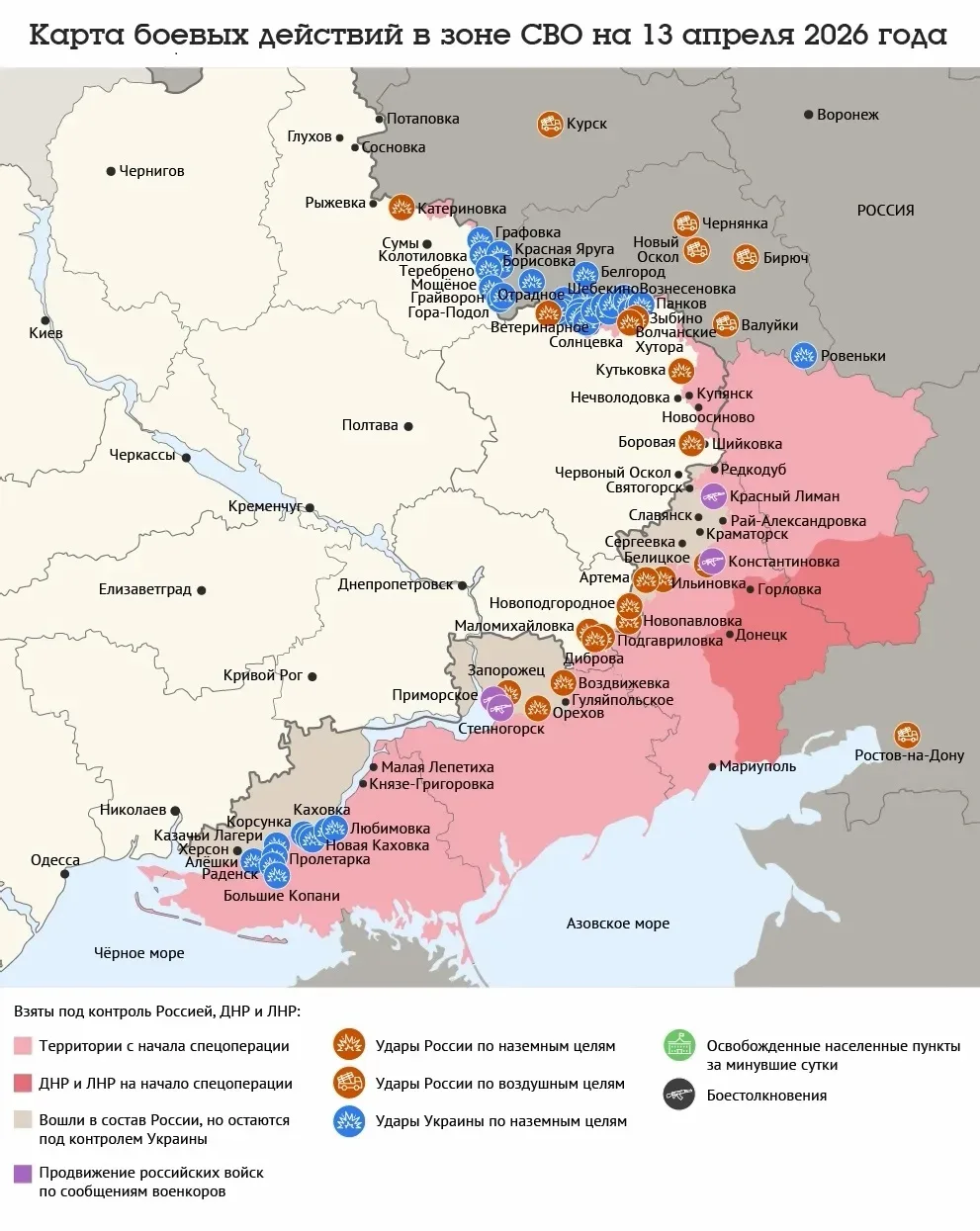 Карта боевых действий в зоне СВО на 13 апреля 2026 года