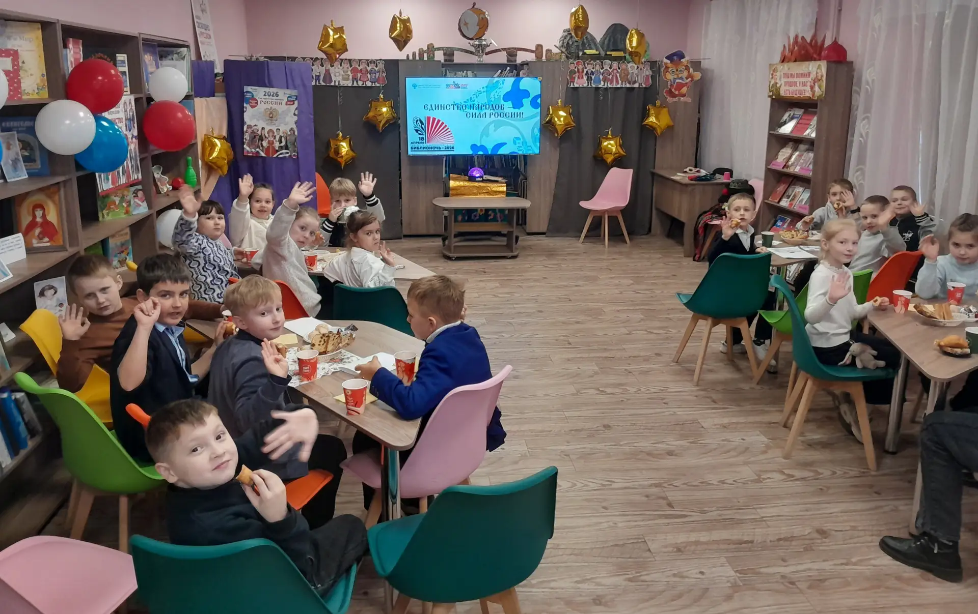 В рамках ежегодной Всероссийской акции «Библионочь-2026» сотрудники детской библиотеки-филиала провели для обучающихся 1 класса МБОУ «Школа № 5 города Дебальцево» фольклорный час «Сказки на ночь»