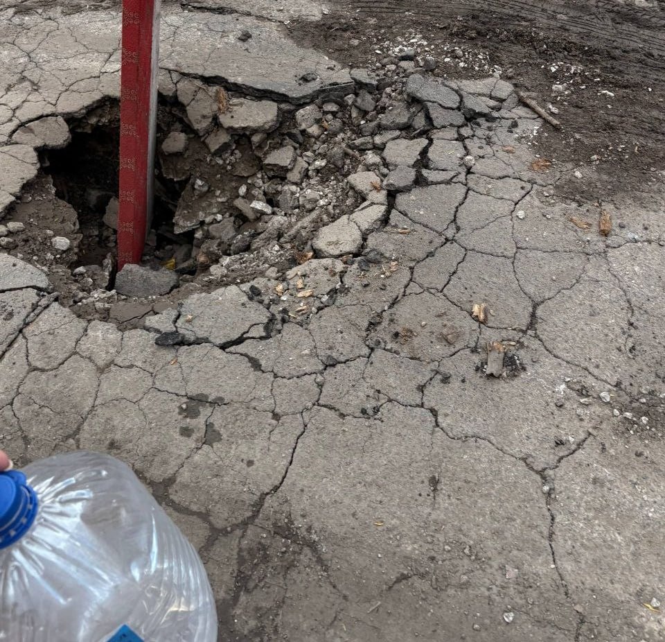 В Пролетарском районе Донецка провалился асфальт в месте, где из-под земли шла вода