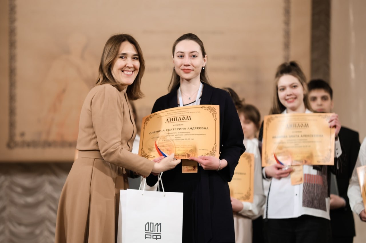 Торжественная церемония награждения в Колонном зале Дома Союзов, а награду Екатерине вручила лично Ольга Петрова — заместитель Министра науки и высшего образования Российской Федерации.