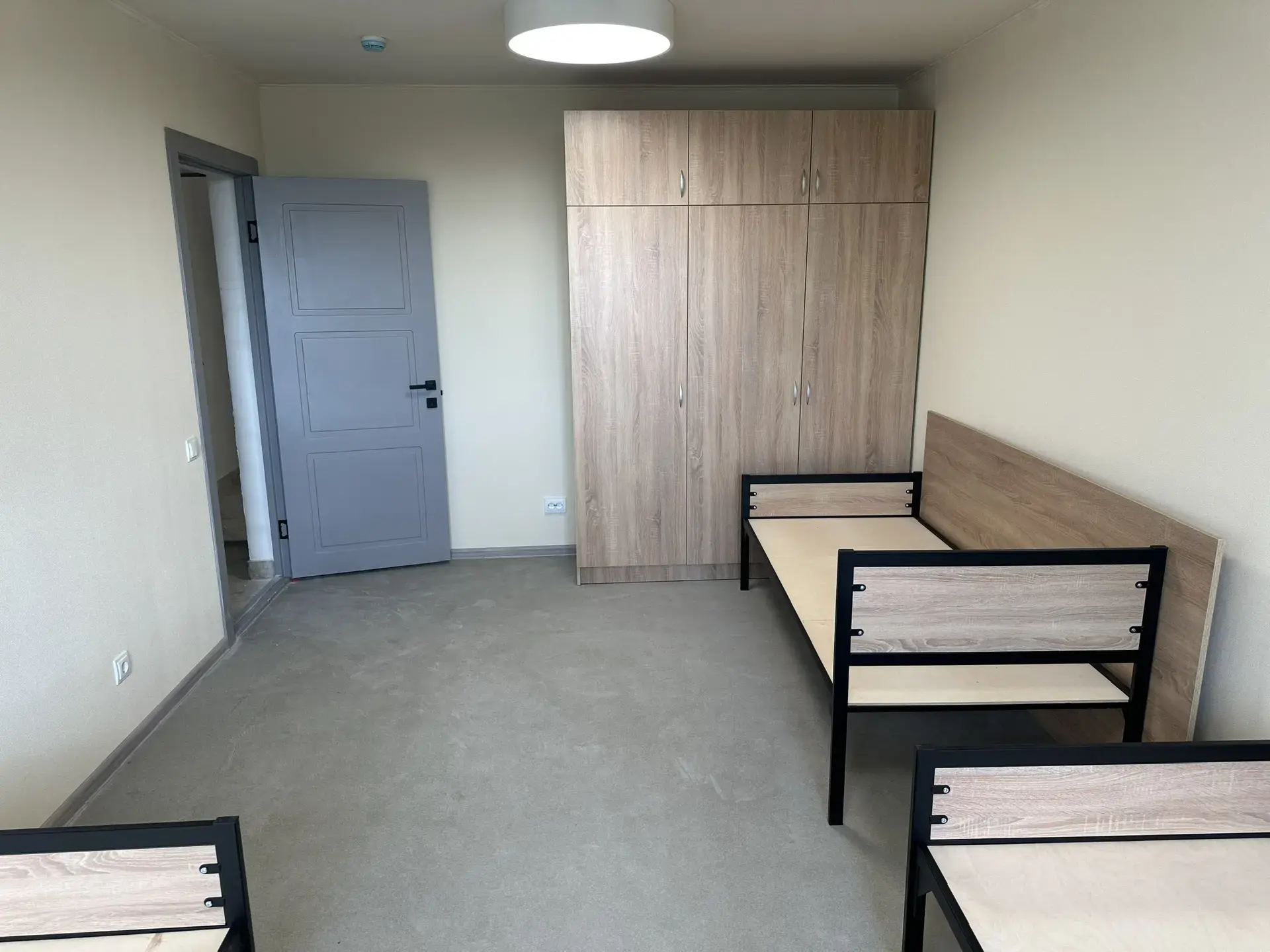 В общежитии начат монтаж светильников, сантехнического оборудования и установка мебели.