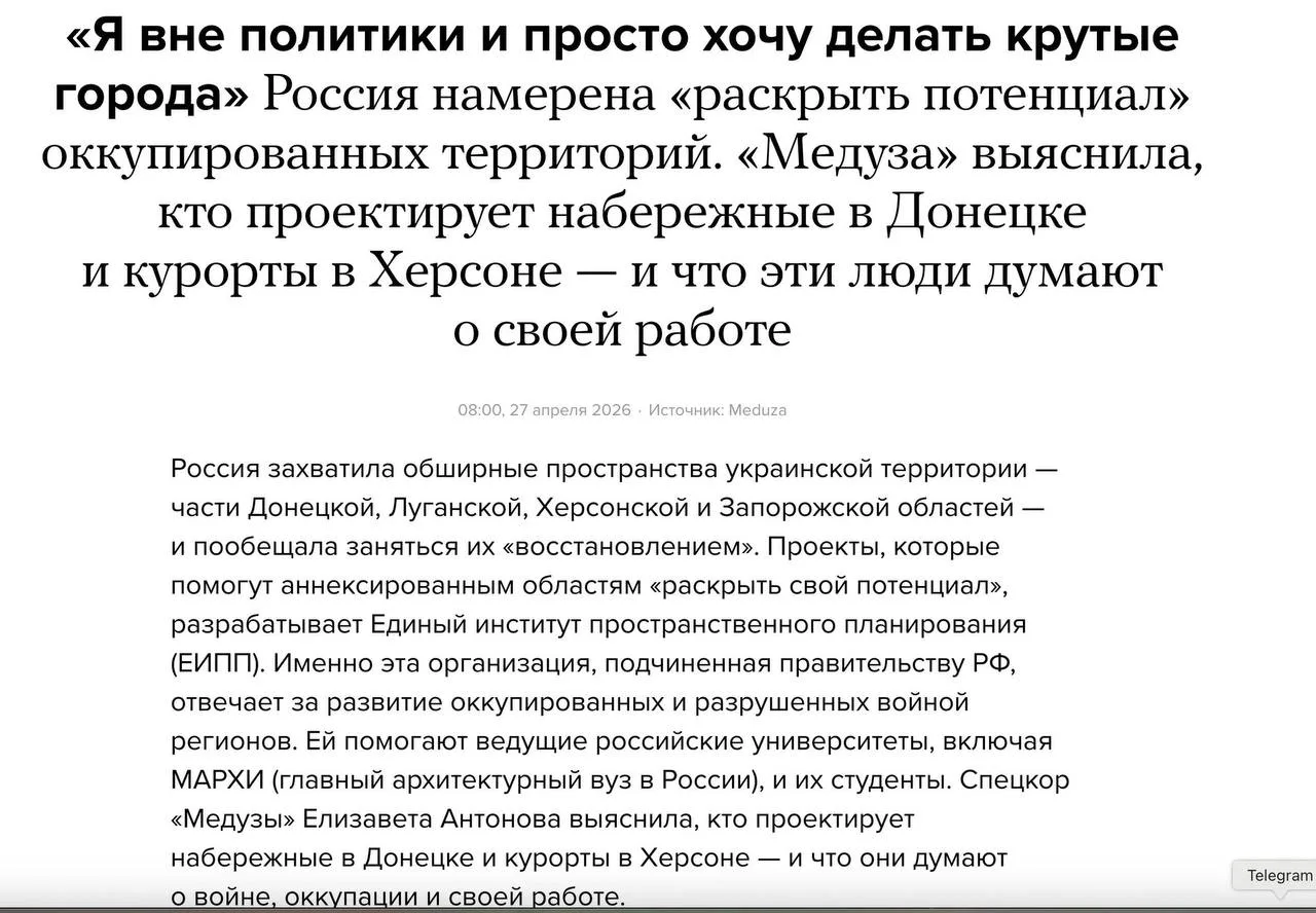 Нет предела чекисткой подлости. Русские орки восстанавливают города Донбасса, привлекая для этого молодых и талантливых архитекторов, опирающихся в своих проектах на лучший мировой опыт