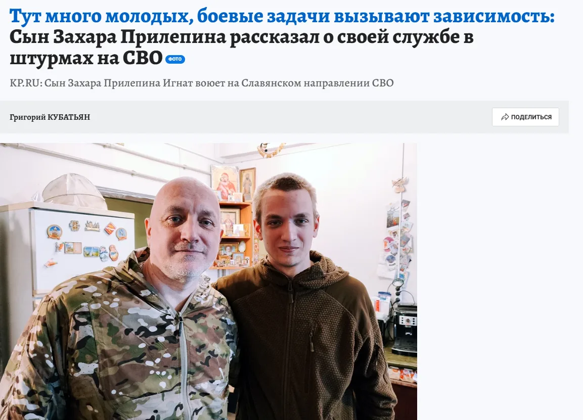 Тут много молодых, боевые задачи вызывают зависимость: Сын Захара Прилепина рассказал о своей службе в штурмах на СВО