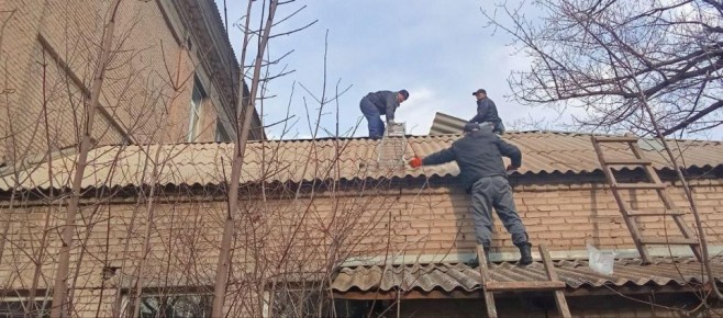 Рабочие региона-шефа произвели демонтаж старого покрытия, ремонт основания, укладку нового кровельного пирога и монтаж дополнительных элементов на крыше Школы № 6 им. Н.Я.Ильина...