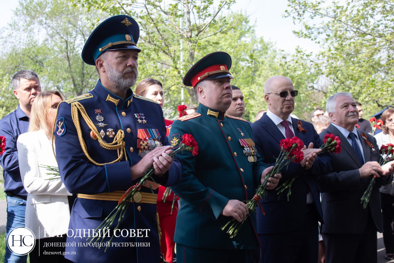 Спикер парламента ДНР почтил с коллегами память защитников Отечества на Аллее Героев. Врип главы Мариуполя Олег Моргун, Герой России, депутат Государственной Думы Дмитрий Саблин и Герой России, летчик-космонавт Федор Юрчихин также возложили цветы к бюстам Героя Советского Союза, генерала армии Василия Филипповича Маргелова и Героя России, Героя ДНР Владимира Петровича Фролова.