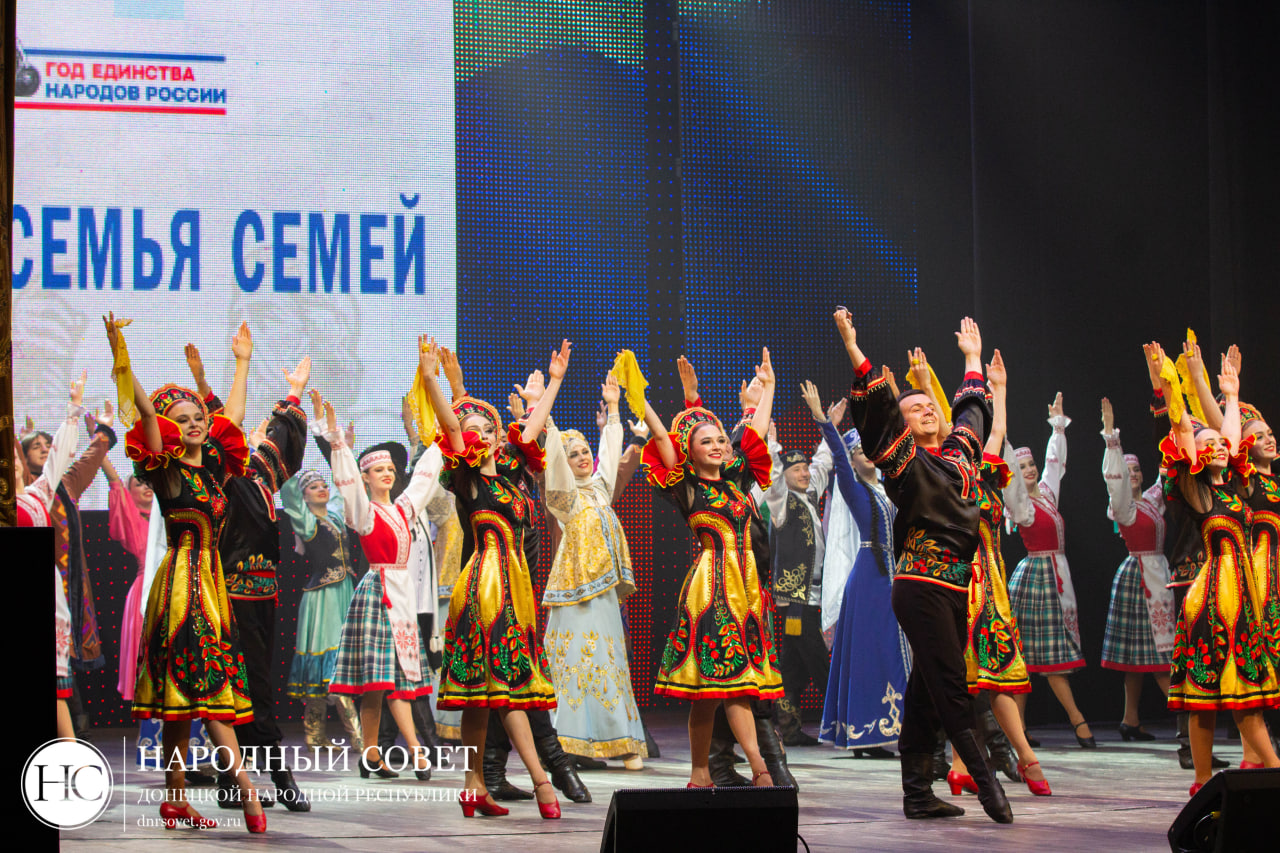 Председатель Народного Совета ДНР Константин Кузьмин и депутаты парламента посетили праздничный концерт по случаю открытия Года единства народов России в Центре славянской культуры.