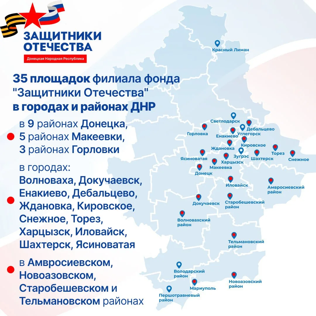 Филиал фонда "Защитники Отечества" информирует о режиме работы 35 площадок в ДНР