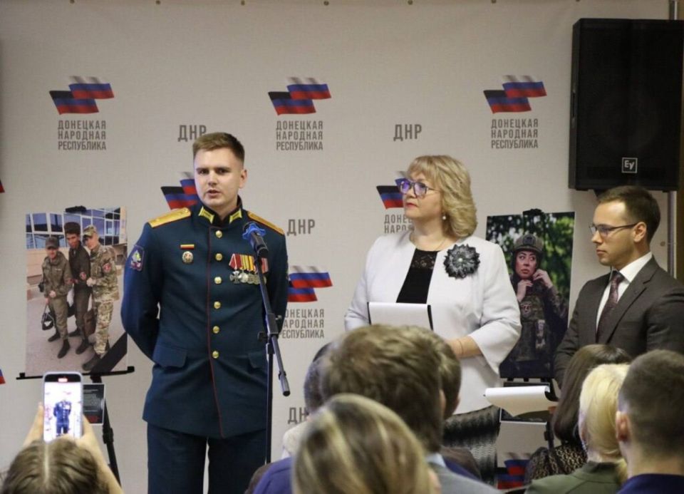 Глава ДНР Денис Пушилин и сенатор РФ Наталья Никонорова вручили юным героям Александру Скакуну, Александру Маршалу и Всеволоду Новикову медали Совета Федерации «За проявленное мужество».