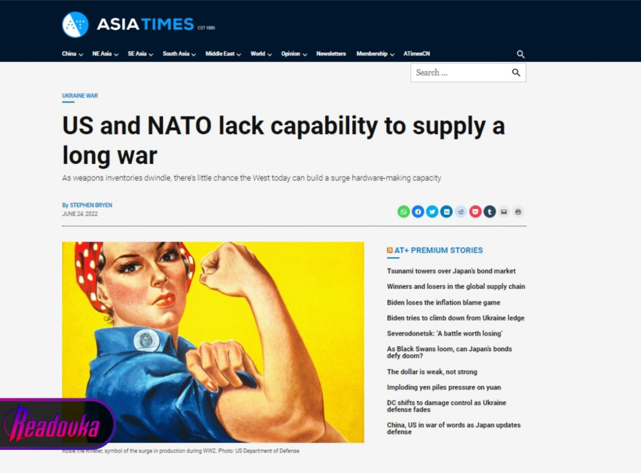 В случае затягивания конфликта, с учетом новых поставок вооружений, Западу не хватит арсенала, чтобы поддерживать Украину в том же темпе. Согласно заявлению начальника Штаба обороны Великобритании адмирала Тони Радакина, высокая скорость расходования оружия на Украине обнажила проблему нехватки производственных мощностей для пополнения запасов. При этом, как отмечает Asian Times, скорость снабжения Украины вооружениями напрямую влияет на ее способность продолжать боевые действия.