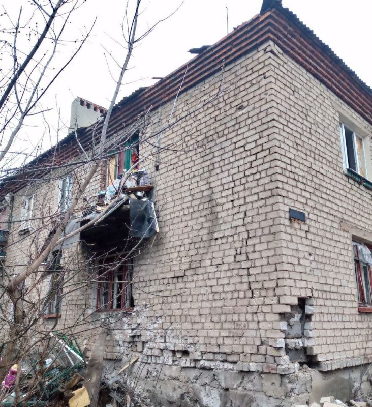 Последствия артобстрела поселка шахты им. Ю. А. Гагарина (Никитовский район Горловки) 15.03.2025 г. с позиций украинских нацистов.
