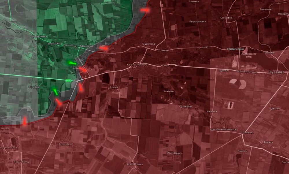 На флангах российские войска продавливают оборону украинских сил в районе Алексеевки и Отрадного, где ВС РФ заняли лесополосу и блокировали Богатырь с востока»