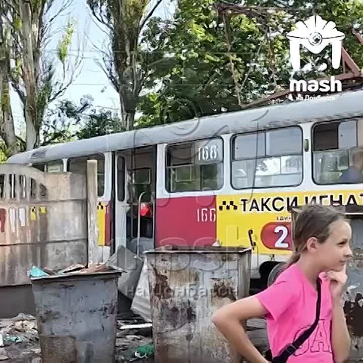 Трамвай сошёл с рельсов и протаранил забор в Донецке.