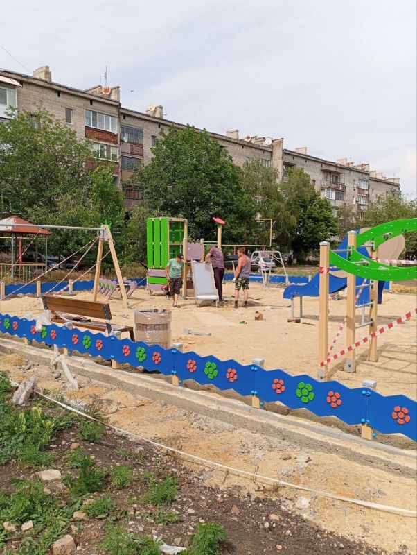 Подрядной организацией шеф-региона Нижегородской области продолжаются работы по установке детской площадки в районе «Новых домов» по ул. Ярославского, д. 14.